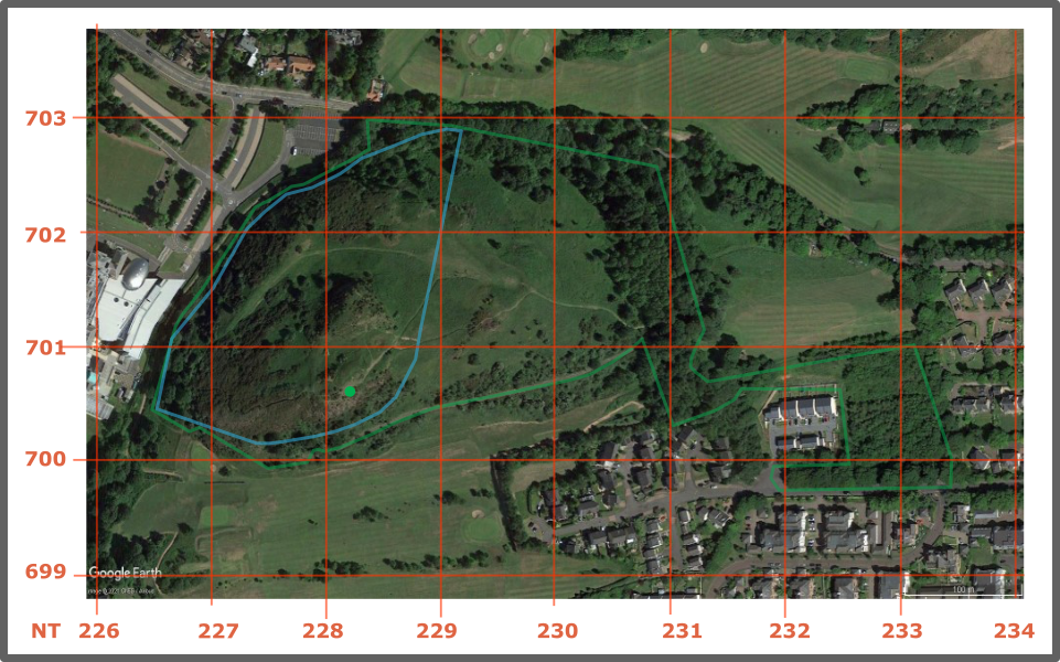 If you are familiar with the OS grid system, you may prefer to use a detailed easting and northing reference. A 100m grid is shown in the map below.